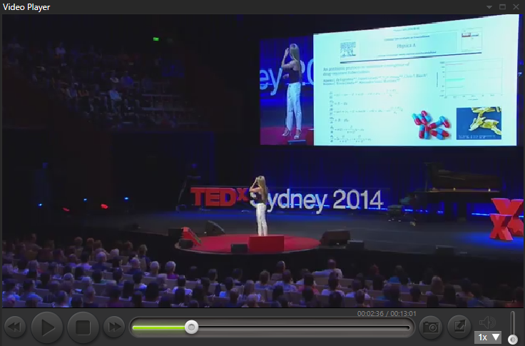 You can change the player screen size by grabbing and dragging the outer gray border or clicking the full-screen button. Clicking and holding on the scrub bar button will display how far into the video playback has reached and allow you to scrub backward and forwards through the length of the video.