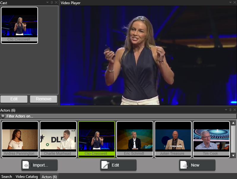 Video Cast - You can add several actors to your videos. Just drag actors from the Actors window into this box.