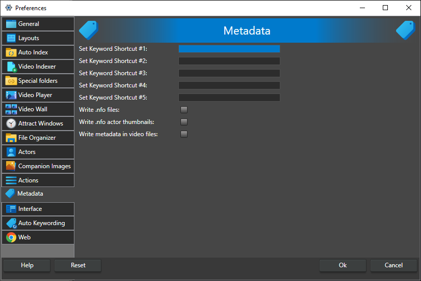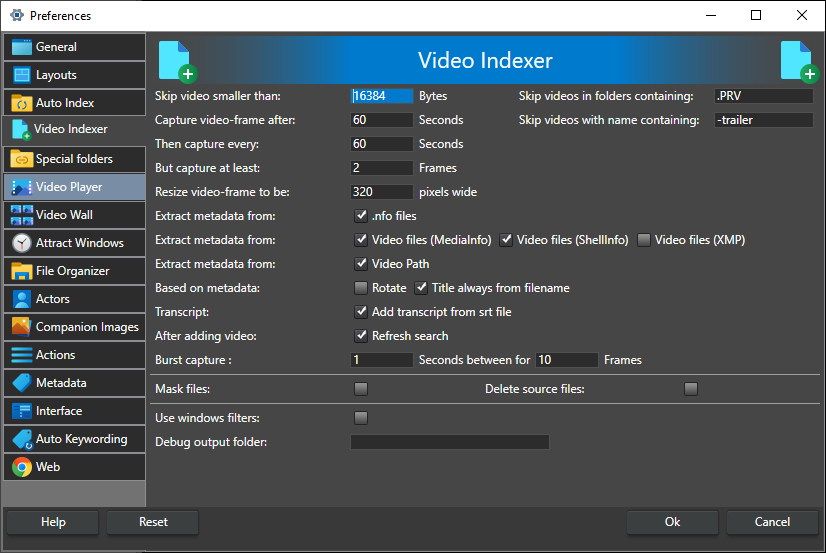 When you add a video to the video catalog, the program scans to extract frames, which become the thumbnails that demarcate the evenly-spaced scenes throughout the video\'s length. You decide how these thumbnails get generated in Preferences(CTRL+P). In this tab, you can override the values previously specified in Preferences for the particular batch you are now adding.
