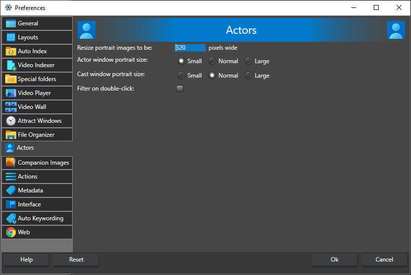An actor\'s companion images are displayed in the Companion Images window for all of a video\'s actors. In Preferences, you can select if a video should or should not use actor companion images. There is even an option to use actor companion images only if the video itself doesn\'t have companion images.