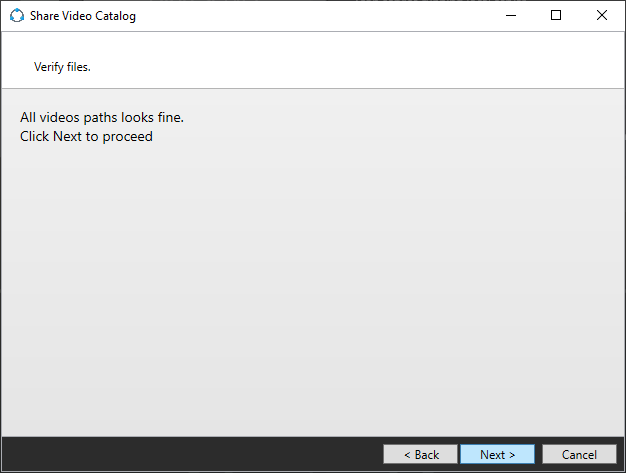 Click the Start button to index your selected videos and get them added to your video catalog.